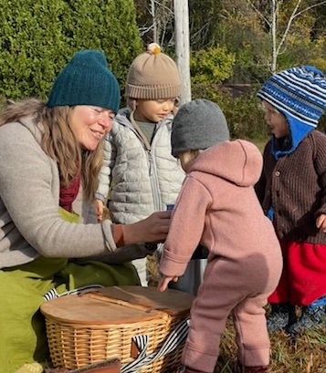Outdoor Parent Child Garden classes are held outside in the woods, farms and gardens encouraging children to play, explore and find reverence for nature. Indoor Parent Child Garden Classes offer opportunities for social play, exploration and meaningful activities. Both experiences honor the young child’s natural imagination and will forces through movement, songs, puppet shows and seasonal activities. Parents will learn ways to intuitively guide their child, bringing more ease and warmth to their connection and allowing the parenting journey to be more inspired, more joyful and more harmonious.